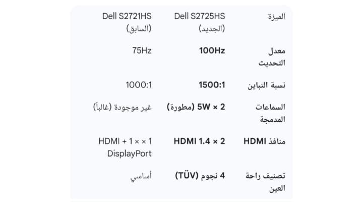 | وجه المقارنة | Dell S2721HS (السابق) | Dell S2725HS (إصدار 2025/2026) |