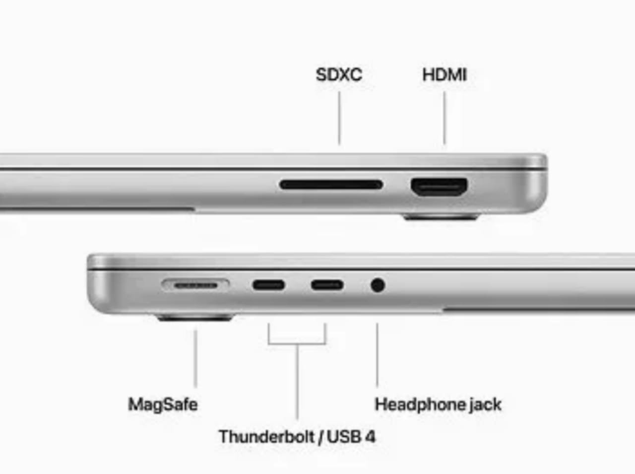 منفذ MagSafe: منفذ الشحن المغناطيسي الذكي الذي ينفصل تلقائياً إذا تعثر أحدهم بالسلك، حامياً الجهاز من السقوط.